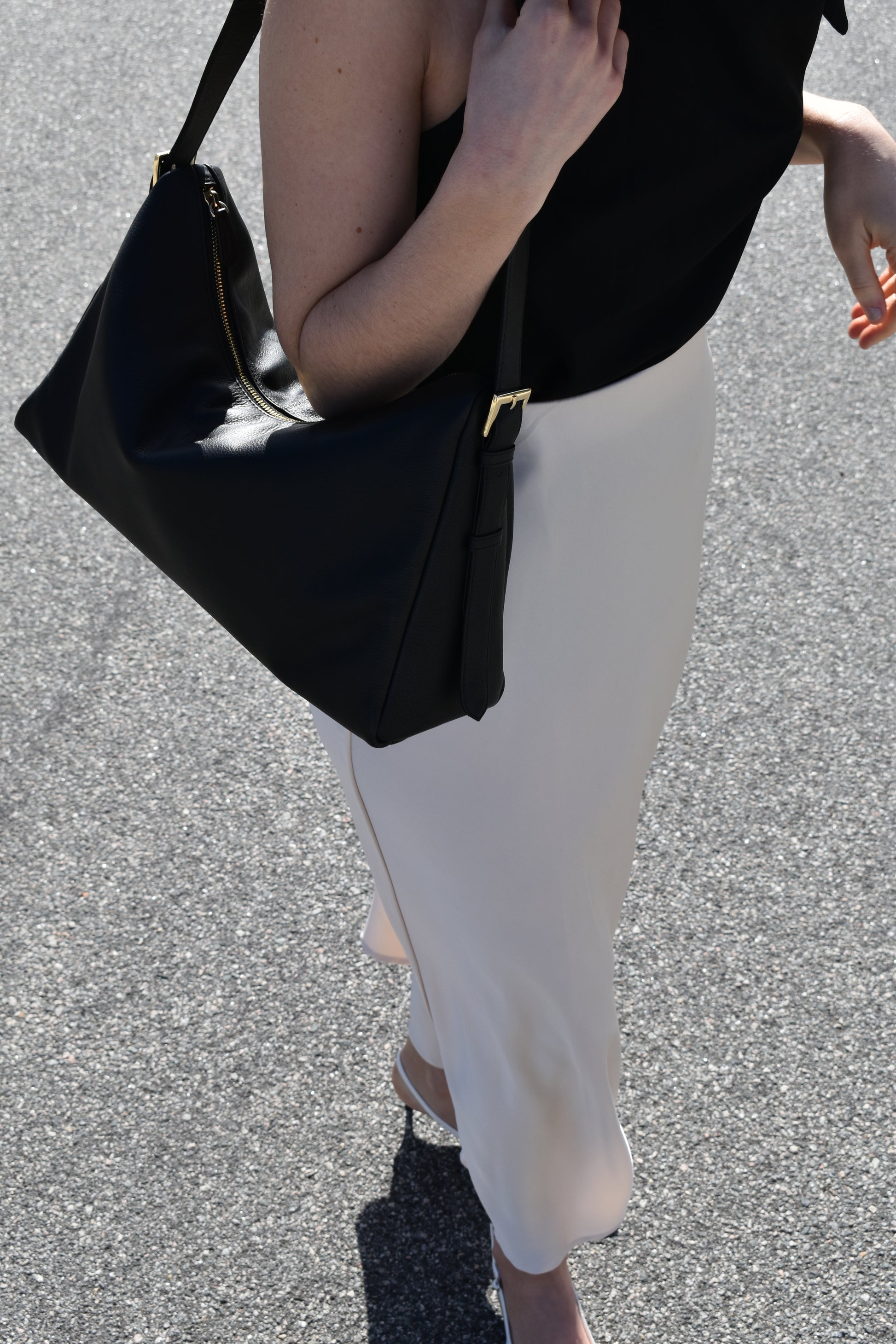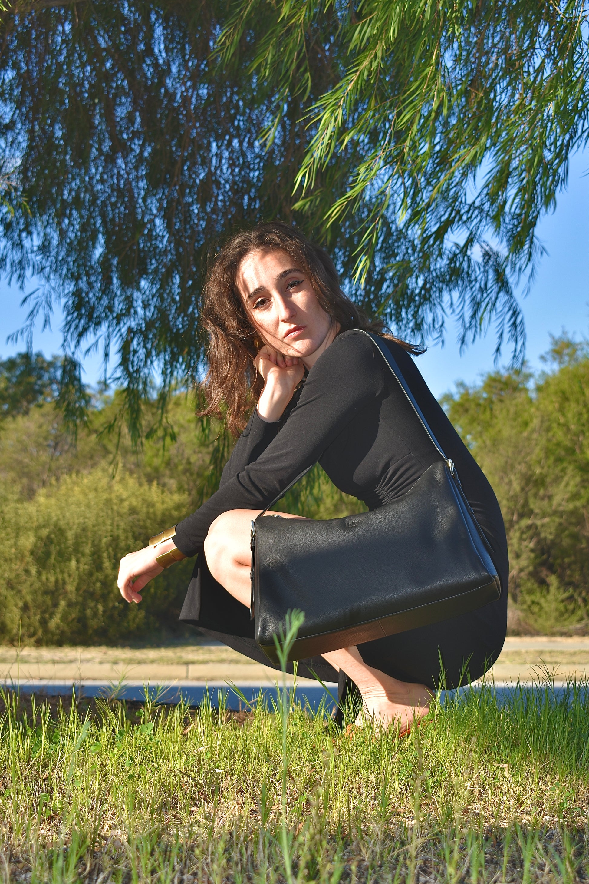 Inspired by the sophisticated minimalism of the ’90s, the Esperance XL Black Leather Shoulder Bag embodies timeless elegance with a modern edge. Handcrafted from premium full‑grain leather, this luxury handbag is soft-structured, designed for both style and function. Its soft, sculpted silhouette follows the natural gesture of carrying a bag, offering effortless versatility — whether worn on the shoulder or tucked gracefully under the arm. Perfect for women seeking a designer leather bag in Australia, the Esperance XL is a statement of refined craftsmanship and everyday sophistication.